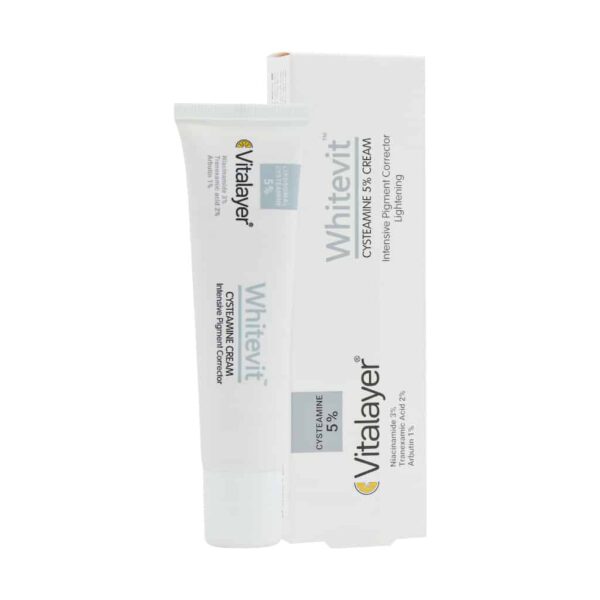 کرم ضد لک و روشن کننده قوی سیستئامین ۵% وایت ویت ویتالیر با فرمولاسیون غنی از ترکیبات آنتی اکسیدانی به درمان لک‌های پوستی و روشن کردن رنگ پوست کمک می‌کند. این محصول با بهره گیری از ۵% سیستئامین لیپوزومال به رفع بهبود لک‌های صورت می‌پردازد. علاوه بر آن در ترکیبات این محصول از آربوتین، نیاسینامید و ترانگزامیک نیز استفاده شده است که اثرات ضد لک آن را تقویت می‌نماید.