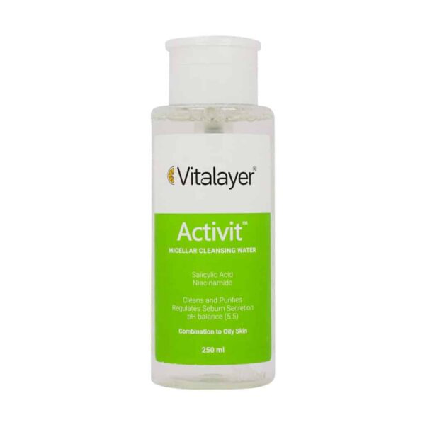 محلول پاک کننده آرایش اکتی ویت ویتالیر حاوی سالیسیلیک اسید و نیاسینامید یک محصول موثر برای پاکسازی صورت از ترکیبات آرایشی و آلودگی است. این محصول با جذب آلودگی‌ها و ترکیبات چربی، باعث جدا شدن آنها از پوست و پاکسازی پوست می‌شود. همچنین با داشتن ترکیبات موثر مرطوب کننده و ضد التهاب پوست بوده و بدون نیاز به شستشو با آب تمامی آلودگی‌ها و آرایش را از روی پوست صورت شما پاک می‌کند. میسلار واتر اکتی ویت ویتالیر ضمن داشتن ترکیبات آبرسان در کاهش چربی پوست و ایجاد جوش موثر عمل می‌کند.