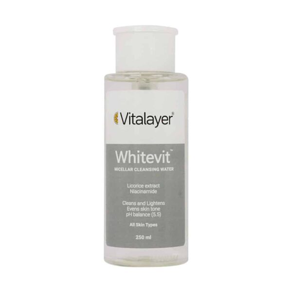 محلول پاک کننده آرایش وایت ویت ویتالیر مناسب پوست های کدر و مستعد لک بوده و یک پاک کننده فوق العاده با قابلیت روشن کنندگی به شمار می‌آید. این محصول به راحتی مواد آرایشی و آلودگی‌ها را از پوست تمیز کرده و باعث کاهش لک‌ها و روشن شدن پوست می‌شود. میسلار واتر روشن کننده وایت ویت ویتالیر پس از مصرف نیاز به شستشو با آب ندارد و به دلیل نداشتن الکل و پارابن، هیچ گونه حساسیت و التهاب پوستی ایجاد نمی‌کند.