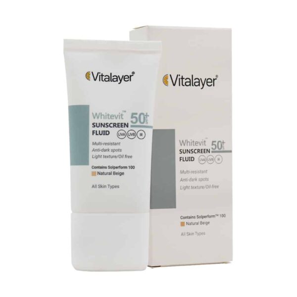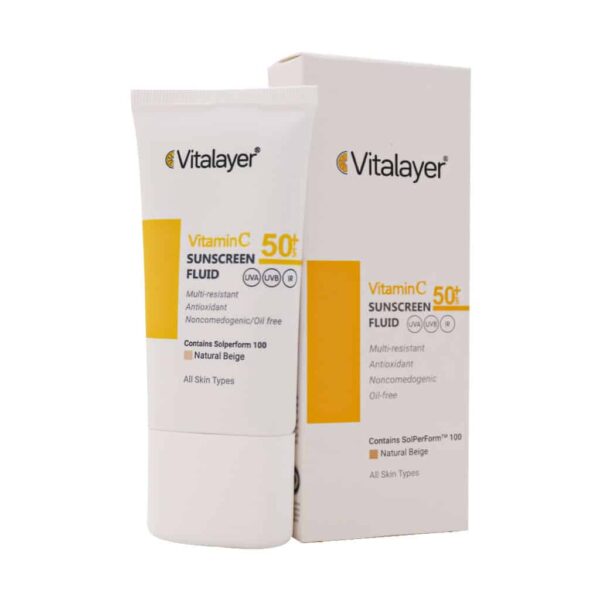 فلوئید ضد آفتاب SPF50 حاوی ویتامین C ویتالیر با طیف متعادل از فیلترهای UVA و UVB و IR پوست را به طور قابل توجهی در برابر اشعه مضر UV محافظت می‌کند. همچنین این ضد آفتاب از پیری زودرس پوست و ایجاد لکه روی آن جلوگیری می‌کند. این محصول برای انواع پوست مناسب است. ویژگی مثبت این محصول که آن را از دیگر ضدآفتاب‌های موجود در بازار متمایز کرده است وجود ویتامین ث آن است که باعث شادابی بیشتر پوست می‌شود.