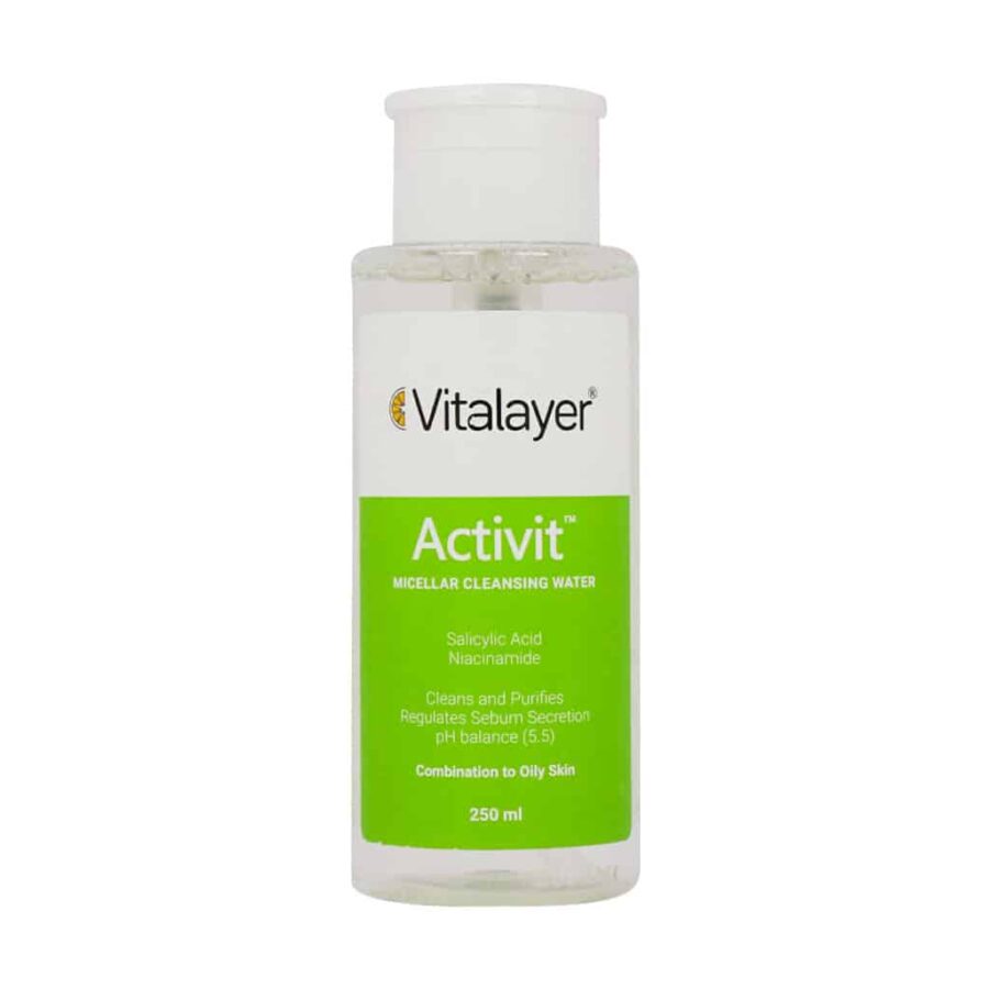 محلول پاک کننده آرایش اکتی ویت ویتالیر حاوی سالیسیلیک اسید و نیاسینامید یک محصول موثر برای پاکسازی صورت از ترکیبات آرایشی و آلودگی است. این محصول با جذب آلودگیها و ترکیبات چربی، باعث جدا شدن آنها از پوست و پاکسازی پوست میشود. همچنین با داشتن ترکیبات موثر مرطوب کننده و ضد التهاب پوست بوده و بدون نیاز به شستشو با آب تمامی آلودگیها و آرایش را از روی پوست صورت شما پاک میکند. میسلار واتر اکتی ویت ویتالیر ضمن داشتن ترکیبات آبرسان در کاهش چربی پوست و ایجاد جوش موثر عمل میکند.